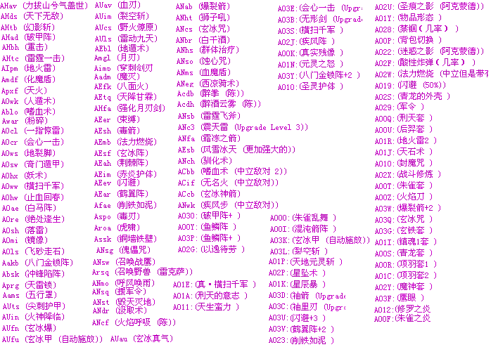英雄类:加血魔/清除CD/负面Buff(负面魔法效果) 复活英雄 升级 加力量 加敏捷 加智力 加三围 切换背包 复制物品 掉落物品 冲物品 打包物品 设置经验 设置技能点 禁止获得经验